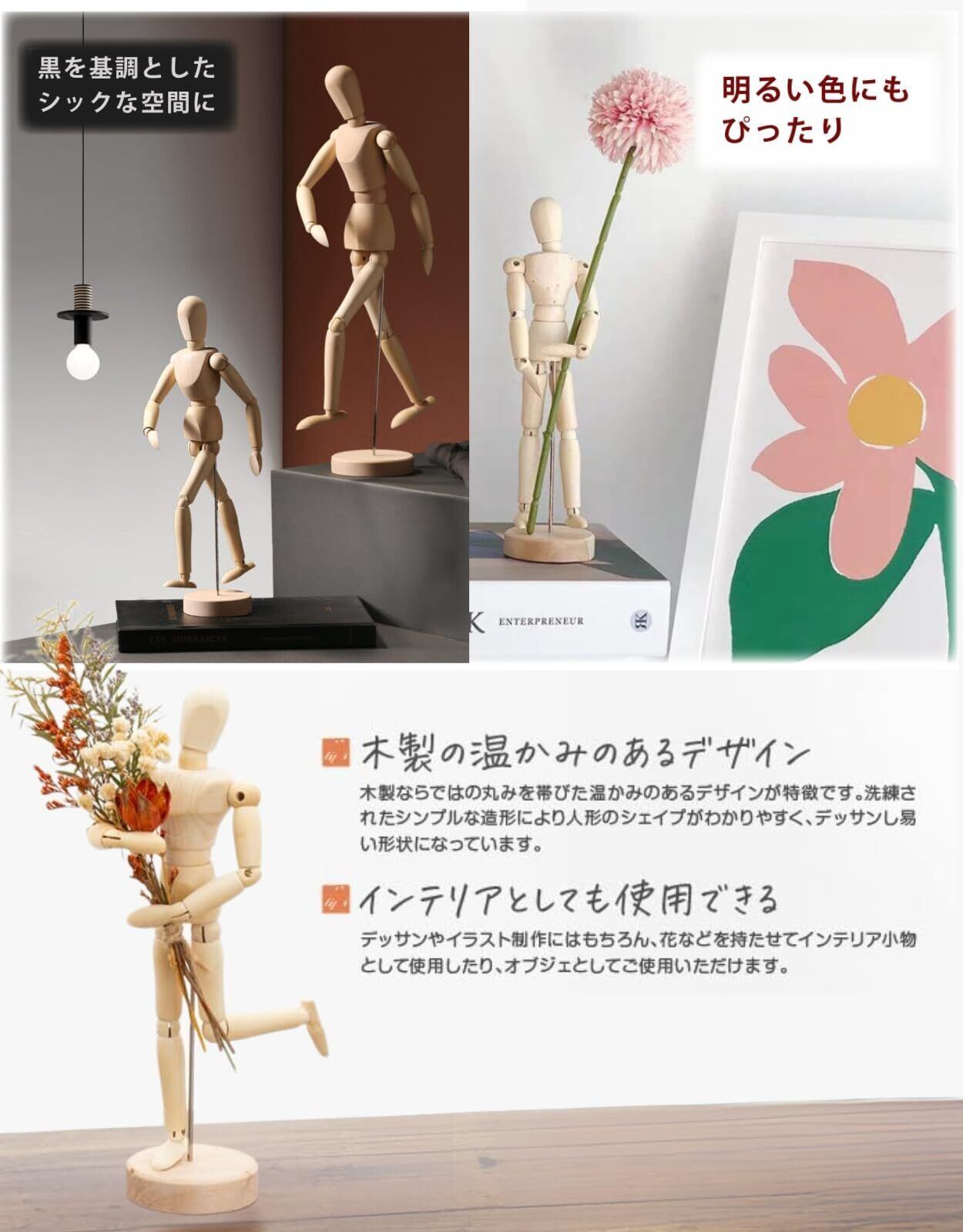 MoZoo デッサン人形 モデル 人 ドール 木製人形 ポーズ マネキン 画材 (S)