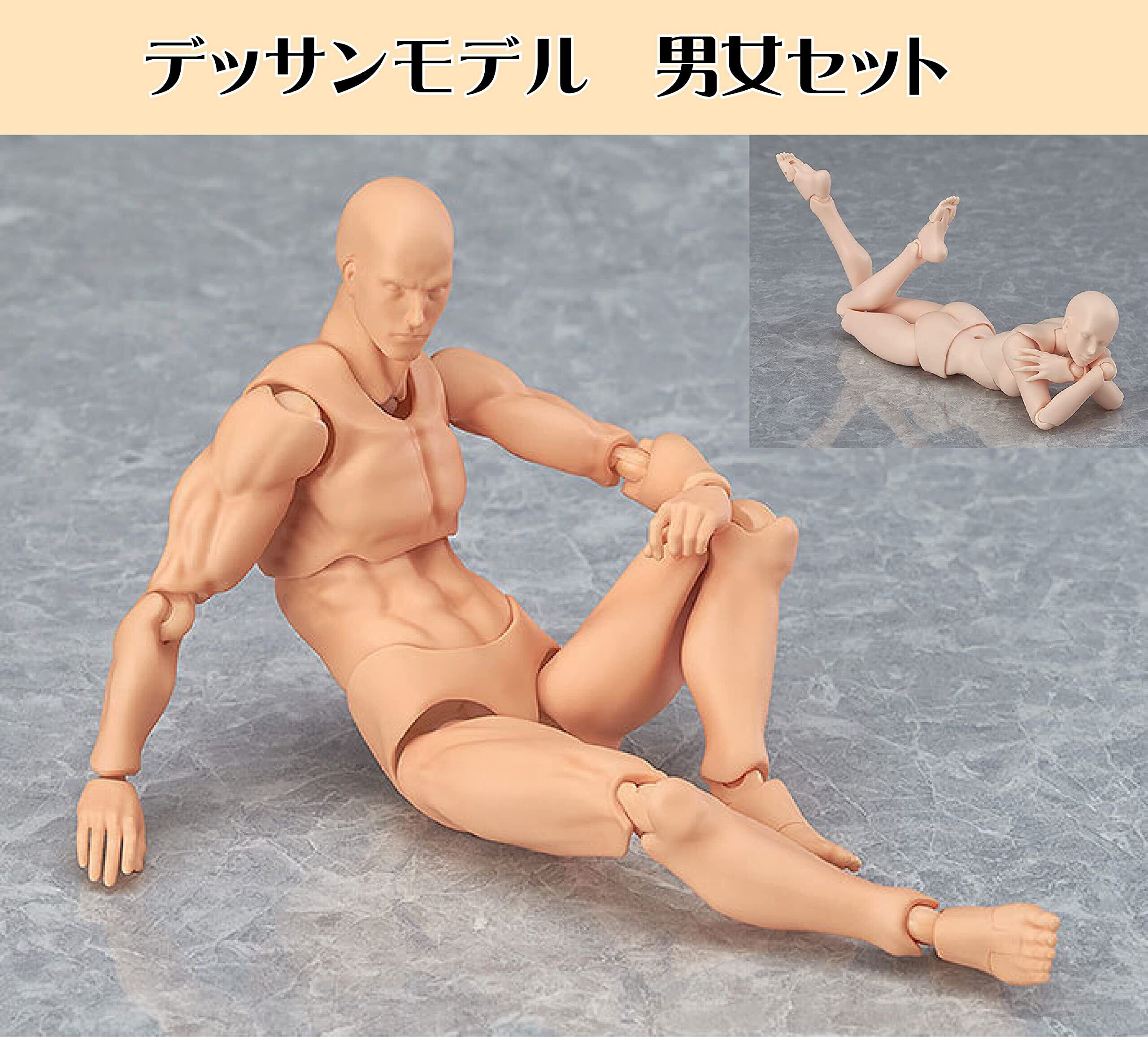 デッサンモデル デッサンフィギュア デッサン人形 フィギュア デッサン用 モデル人形 人体模型 マネキン 作画練習 小道具 スタンド付き 1/12 男女セット 肌色