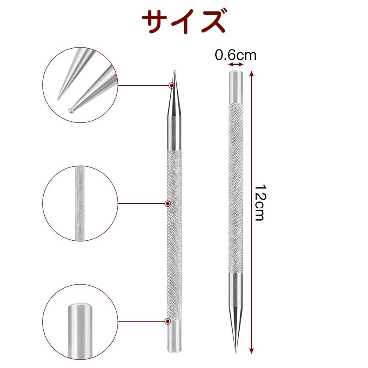 LIANHATA 鉄筆 シルバー エンボッシング レザーストロークペン エンボスペン スタイラス 位置決め 折れ目 ハンドメイド DIY ペーパークラフト (尖った頭+丸い頭)