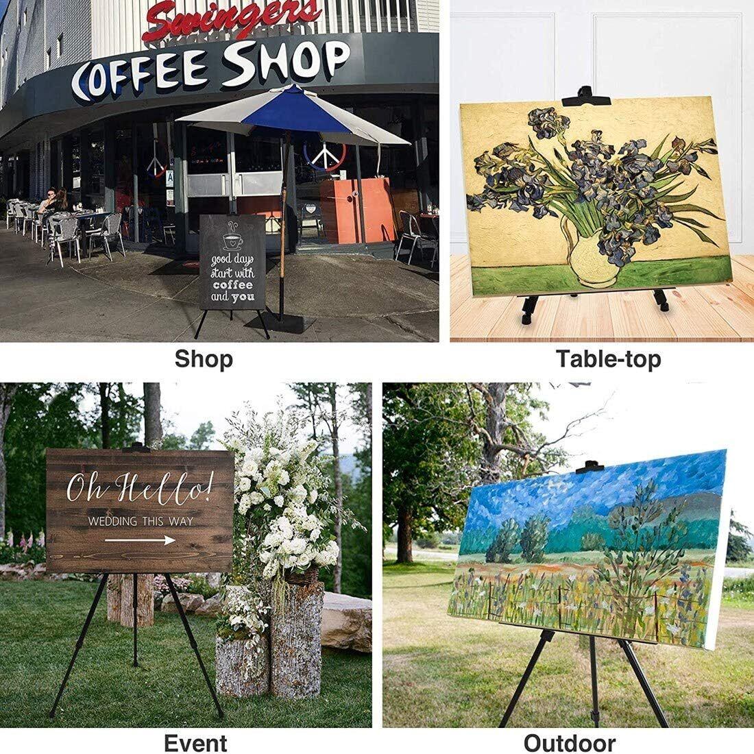 イーゼル メタルイーゼル55-158cm 折りたたみ 高さ調節3段式 展示 装飾 看板 絵画 ポスター 収納袋付き (純黒 M)