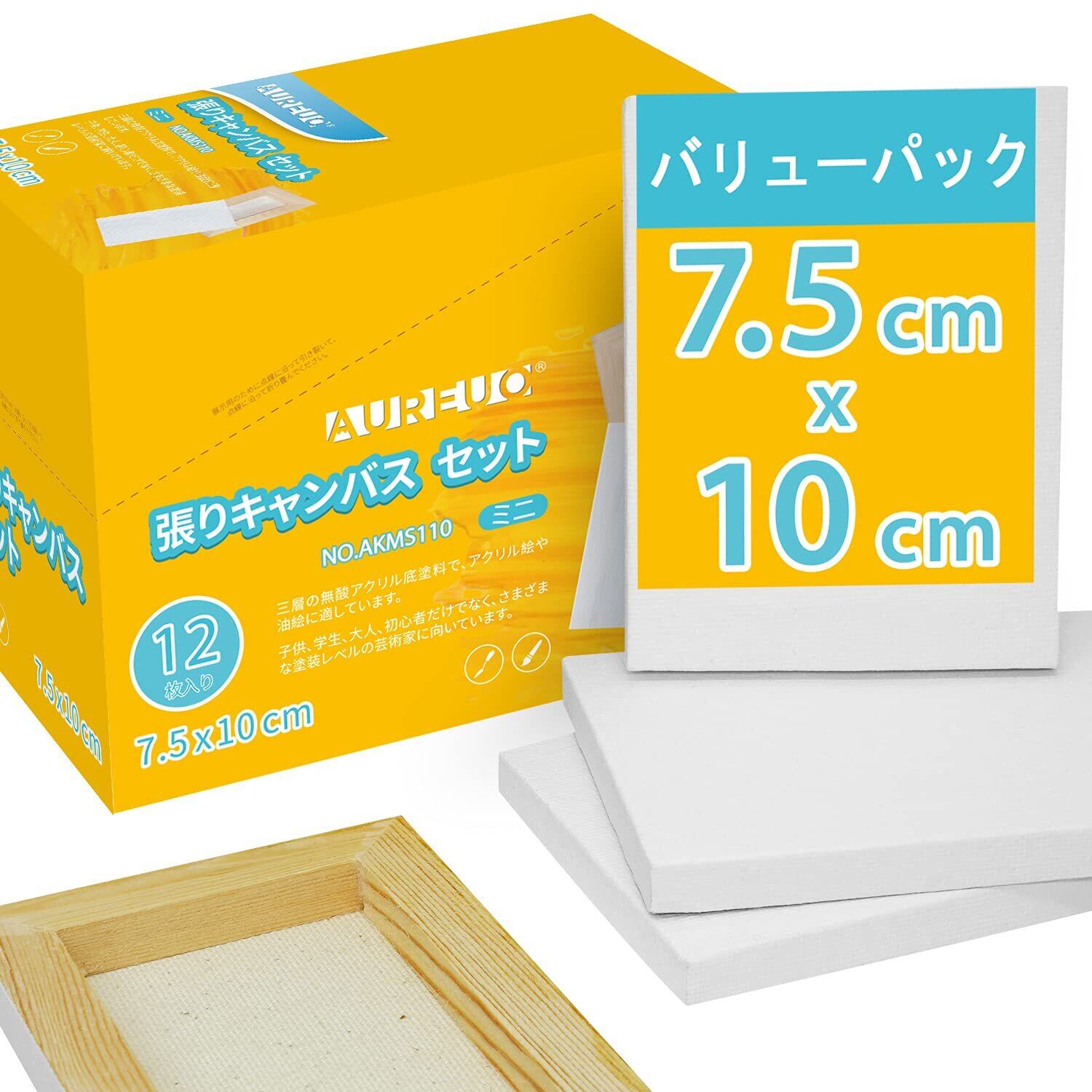 AUREUO ミニ 張りキャンバス 12枚 7.5CM×10CM - 中目 100%コットン 松木の枠 - 水彩絵・アクリル絵・油絵に適用 芸術絵創作 現代油絵 美術装飾