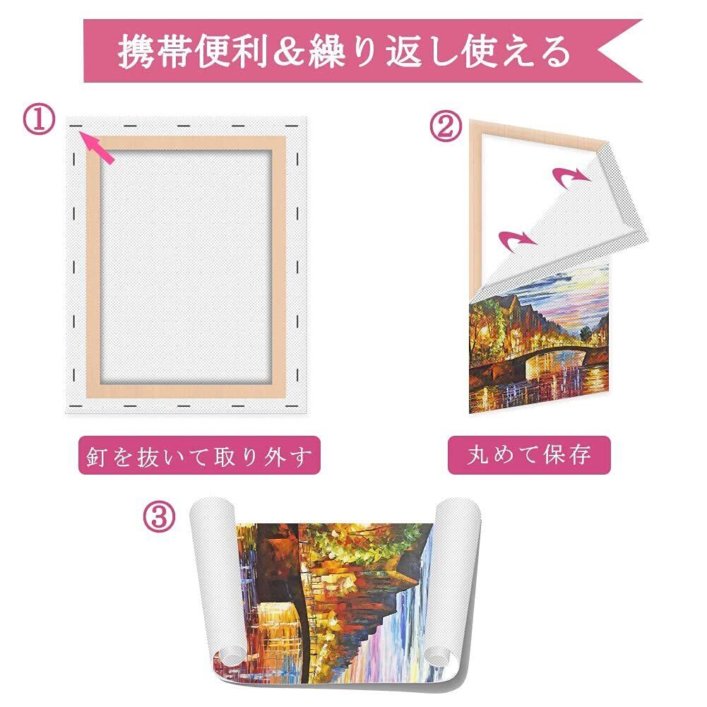 【携帯便利&繰り返し使える】:描かれたキャンバスは、釘を抜いて取り外すことができ、描かれている表面を外側にして、丸めて保存することができます。内側にして丸めると剥離する原因になります。残された木枠は、キャンバスを自分で張って再利用できます。軽いので携帯性に優れ、野外スケッチなどにも向いています。