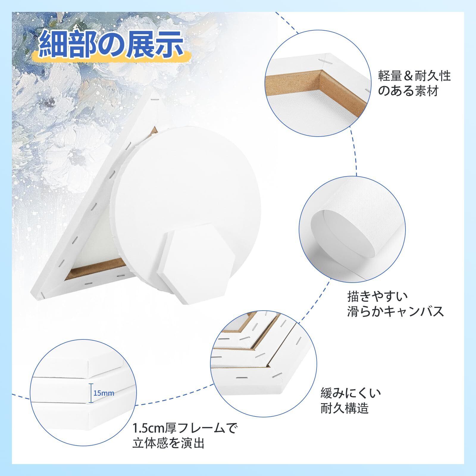 【特価商品】HANSILK キャンバス 画材 張りキャンバス 化繊綿 3枚/セット 10cm/20cm/30cm 絵画 描画 油絵 画布 練習用向け 初心者 絵画ボード 油彩・アクリル兼用 六角形 | jake