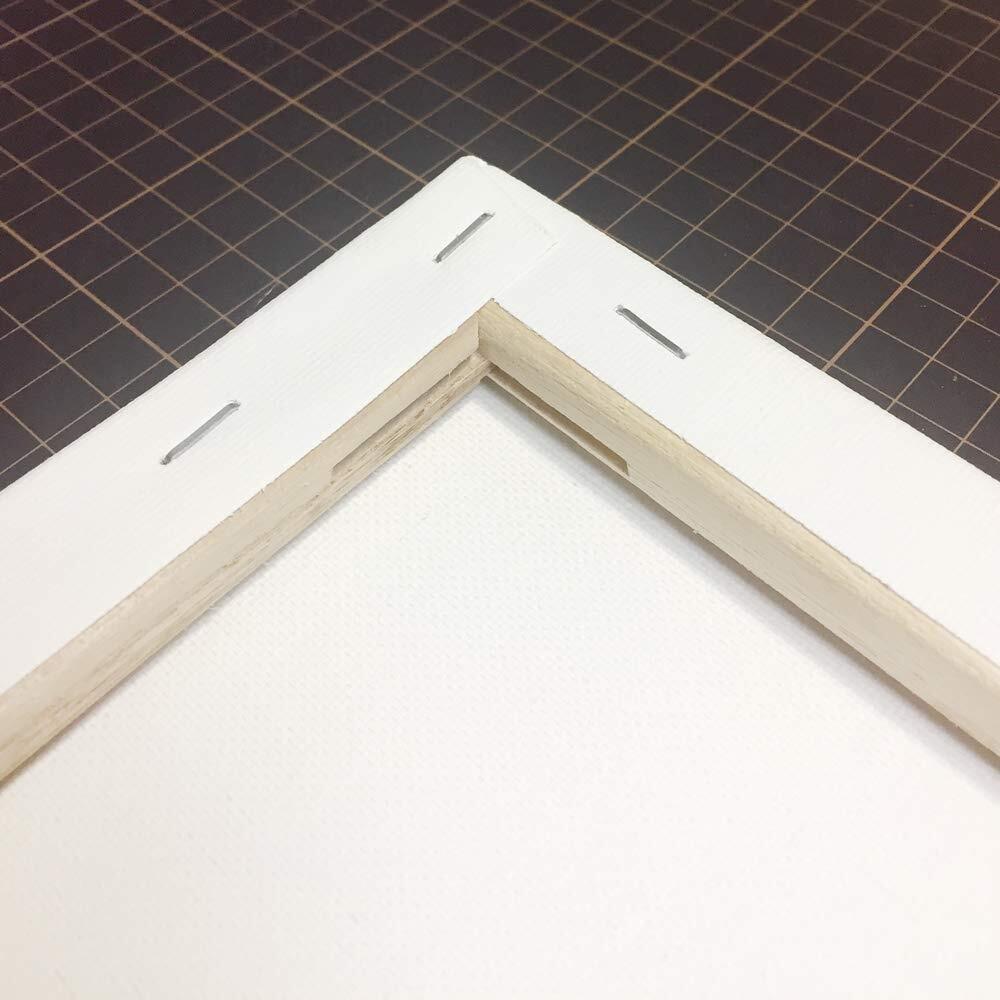 油彩・アクリル兼用 化繊/綿 中目 白の地塗り仕上。楔付き。