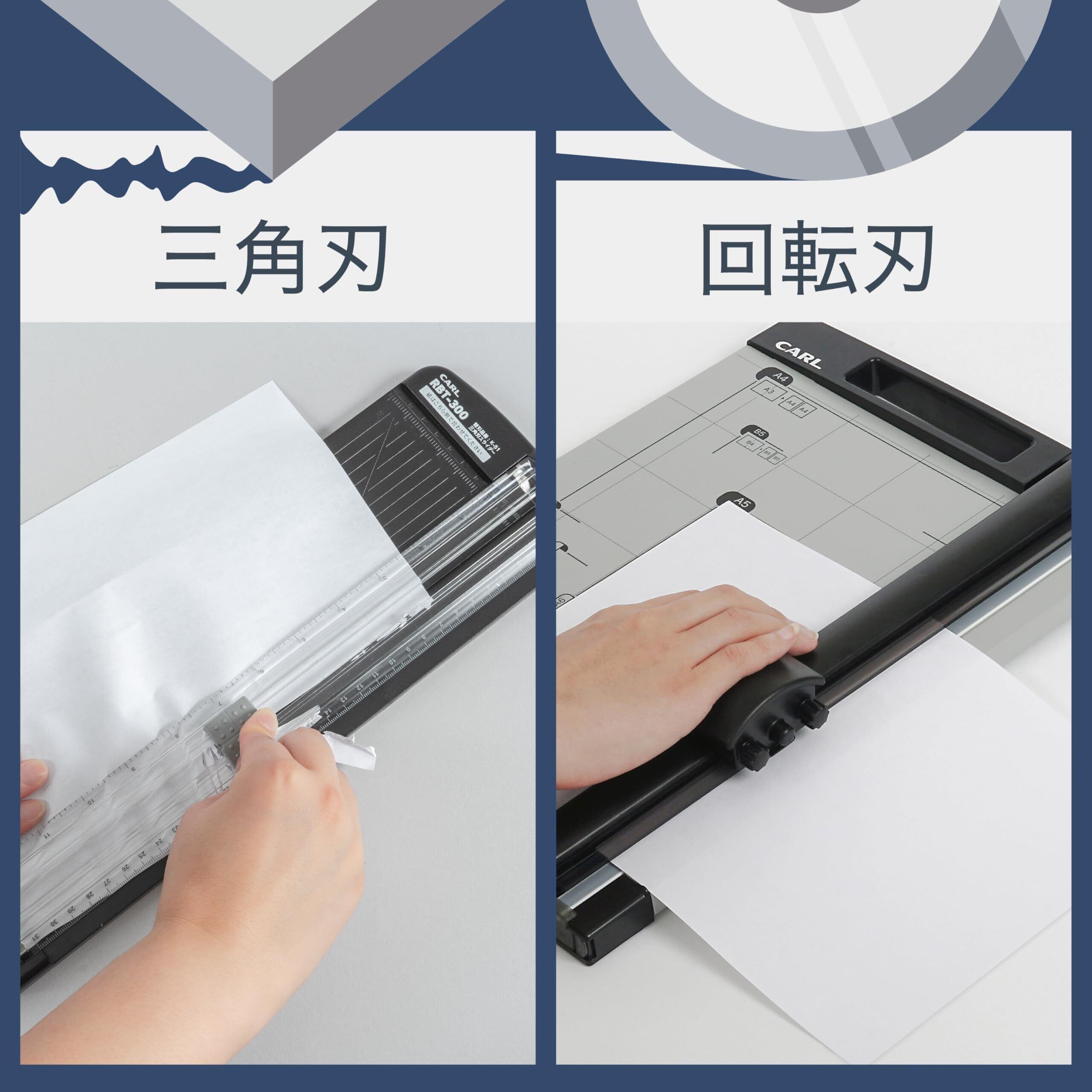 【裁断枚数(コピー用紙64g㎡/使用時) 】丸刃10枚(スライダー1往復目安)、ミシン目刃(別売)3枚(1スライド)