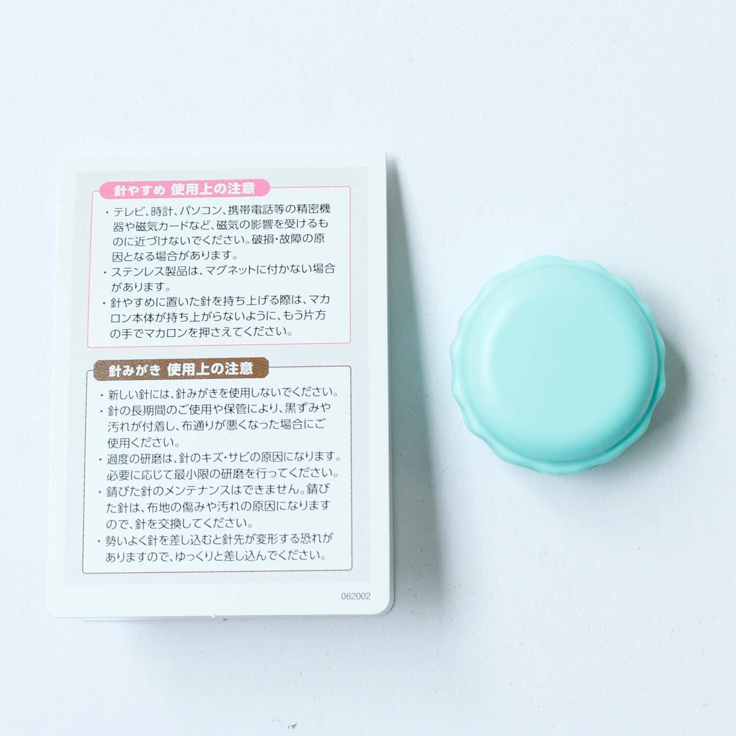 マグネットの力で針をキャッチでき、マカロンのクリーム部分は針みがきができる