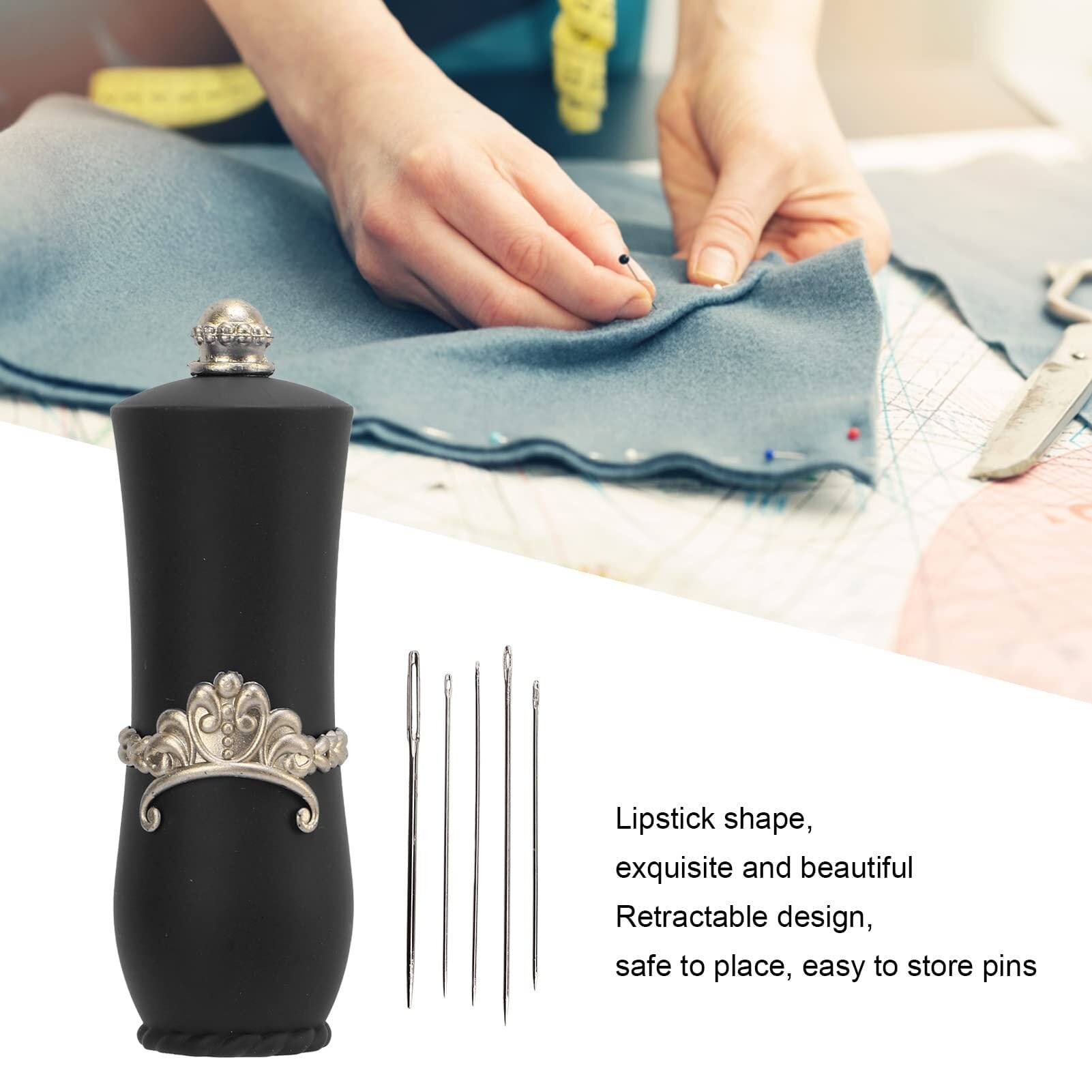 【在庫セール】リップスティック型ピンクッション 美しく収納可能なデザイン 家庭用携帯型 針回収器 5本針付き 針山 引き込み式のデザイ 便利 口紅の形 針収納(黒) ソーイング&エンブロイダリー | jake