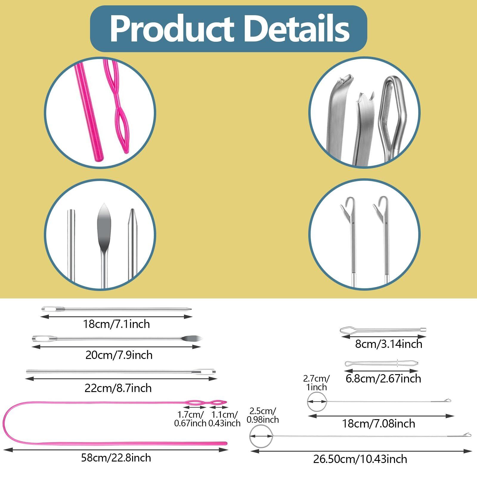 8個の引き紐通しツールセット、縫製ループキットにはラッチ付き縫製ループターナー、ステンレススチール製縫製ロングループターナーツール、ジャケット、コート、パンツ、パーカー、セーター用の簡単なロープ通しクリップが含まれます。