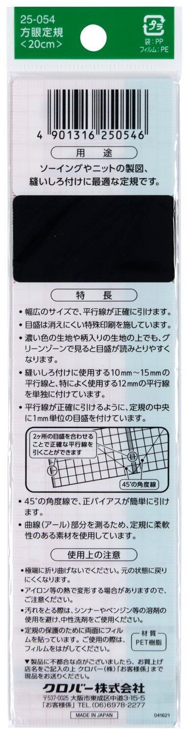 クロバー(Clover) ソーイング用品 方眼定規 20cm 25-054