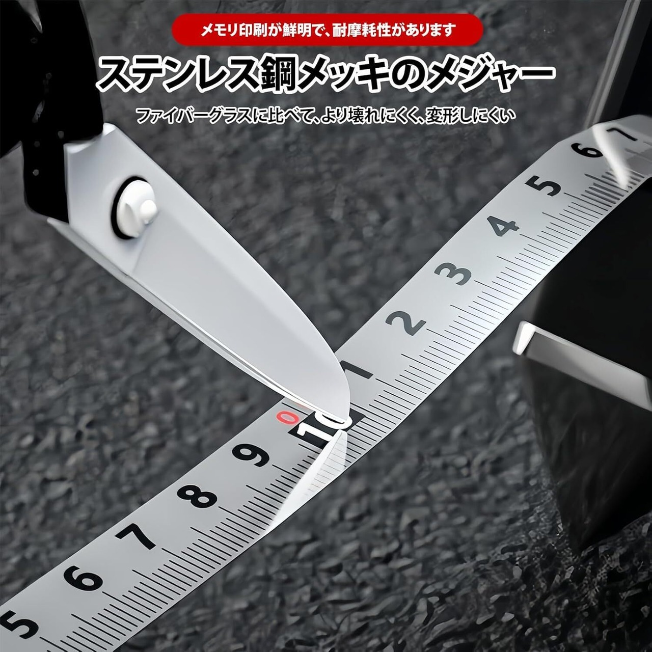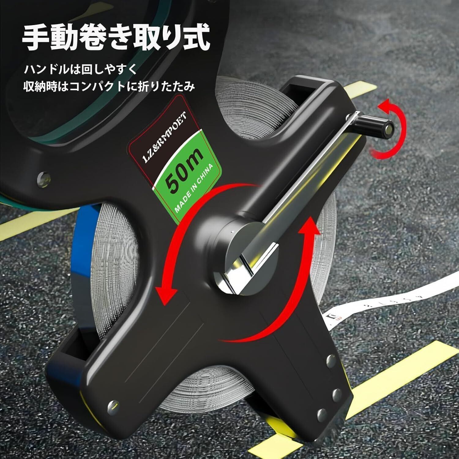 【頑丈設計】ステンレス鋼の50mのメジャー:メモリ印刷が鮮明で、耐摩耗性があります。ABS、グラスファイバーに比ベて、より壊れにくく、変形しにくい。強化グラスファイバーを用いており、強い剛性を備えているため曲げ伸ばしに強く、水や日光に強い素材のため長期使用しても劣化しにくいです。