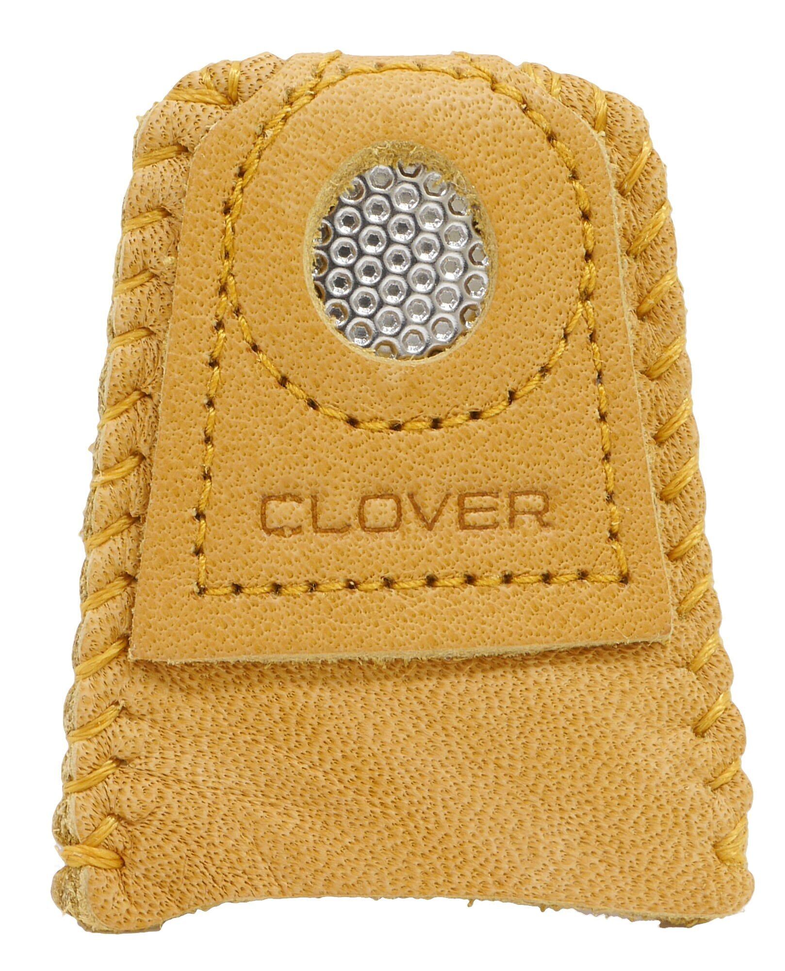 指にやわらかくフィットするソフトレザーにディンブル(くぼみ)加工のコインをセット。硬い布でも針を強く押すことができる。(より)
