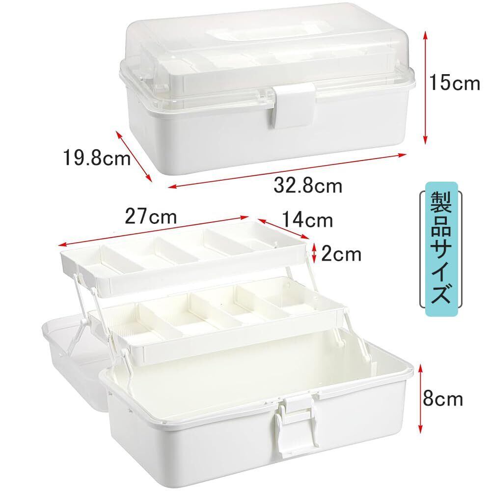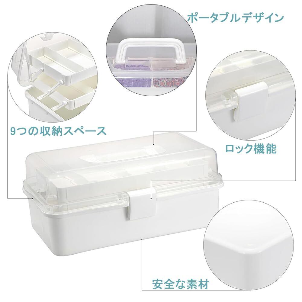 DFsucces ツールボックス 3段式大容量収納ボックス 半透明 180度オープン 多機能 小物入れ 裁縫道具 取っ手付き 雑貨収納ボックス 家用 車用 (ホワイト)