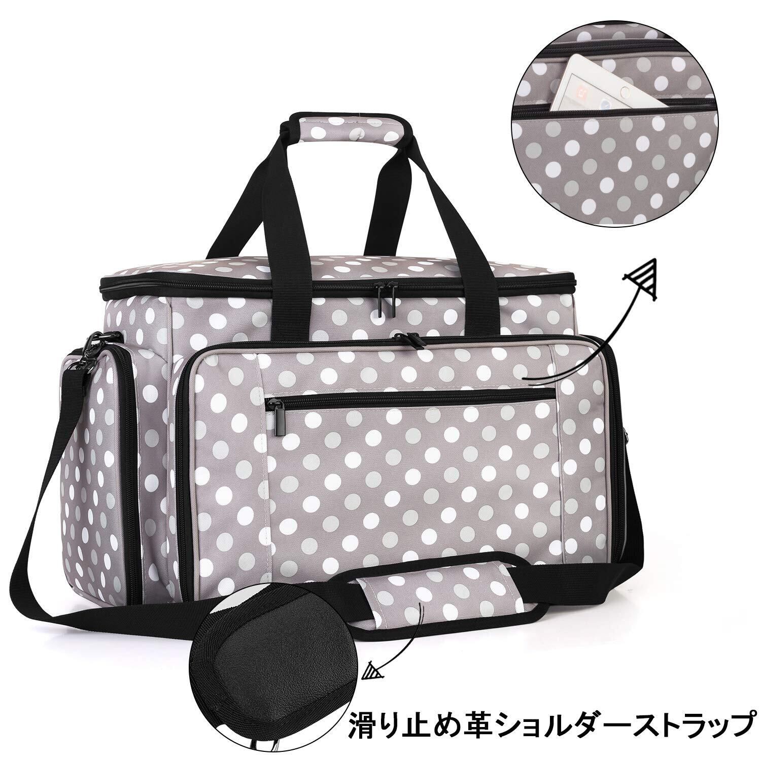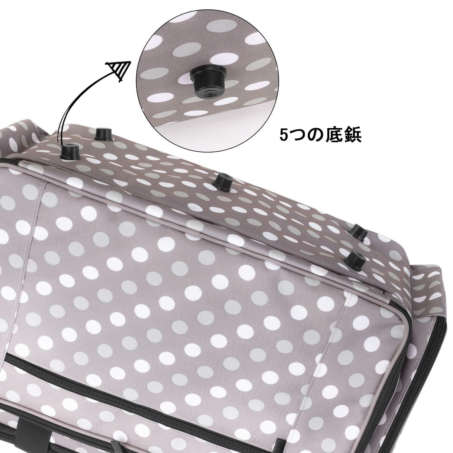 Luxja ミシンケース ハードボード付き 裁縫道具もまとめて収納 クッション性 (グレー ドット)