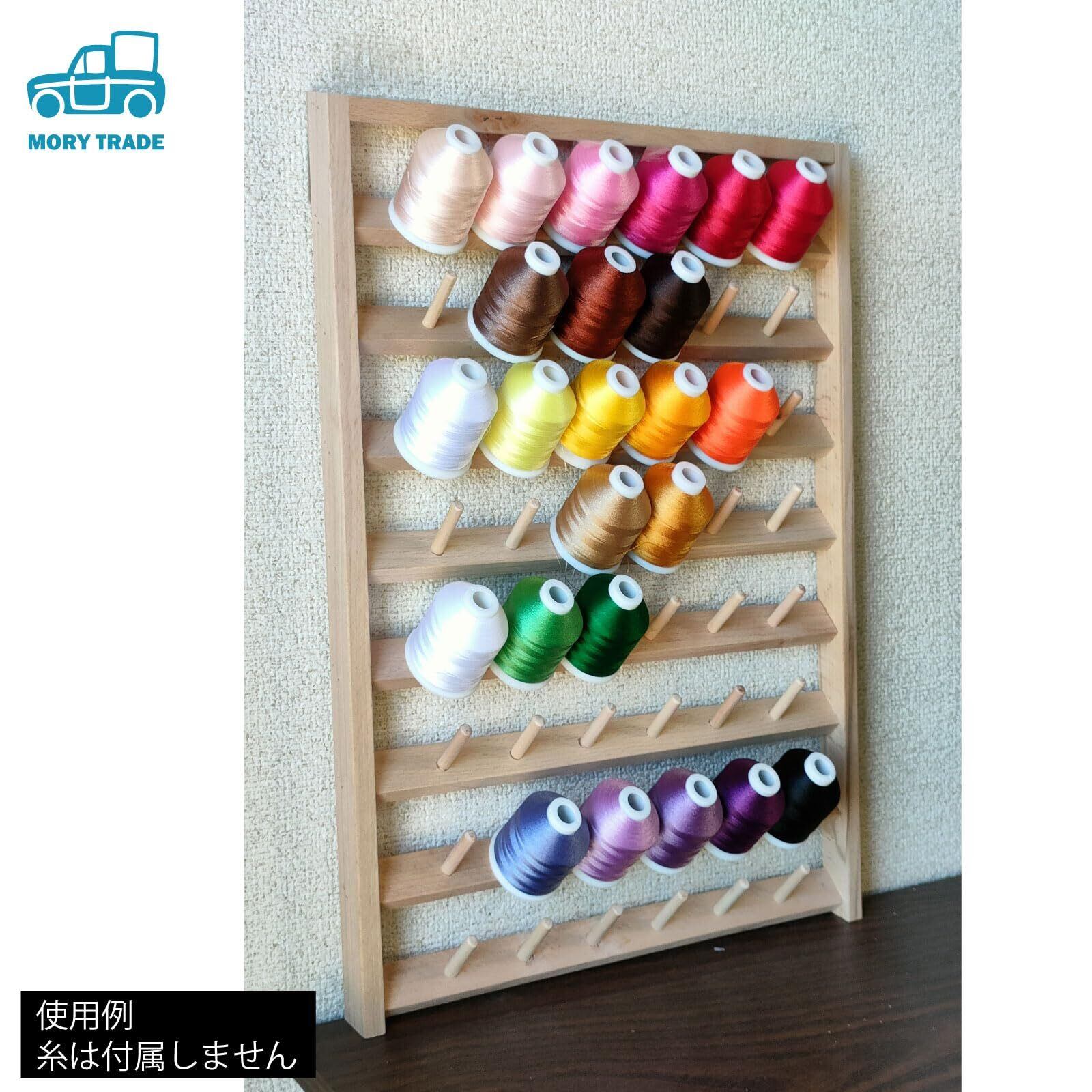 MORYTRADE 糸巻ラック ミシン糸 刺繍糸 糸立て 台 木製 ラック 収納 スタンド 壁掛け 48本