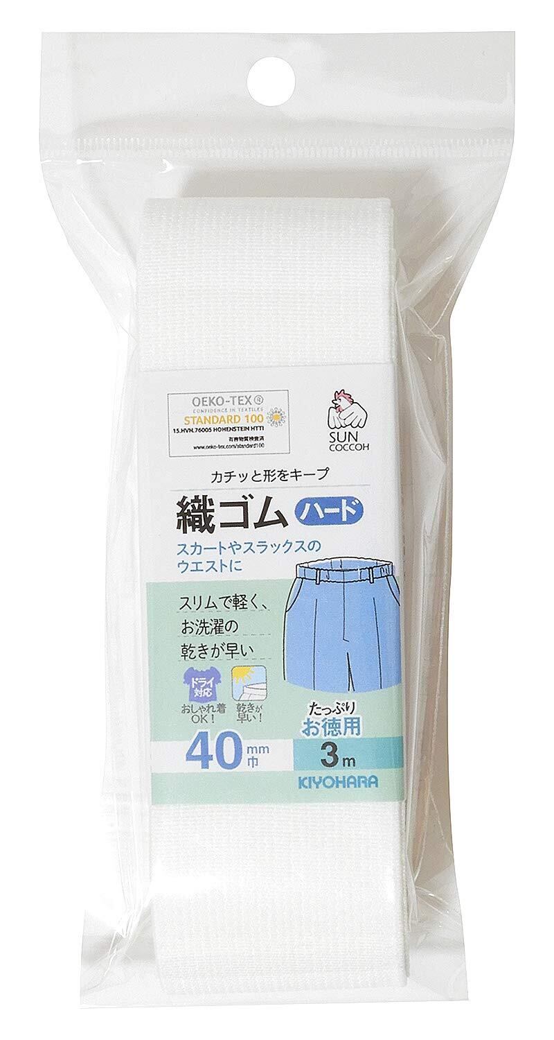 KIYOHARA サンコッコー 織ゴムハード 3m 40mm巾 白 SUN41-45