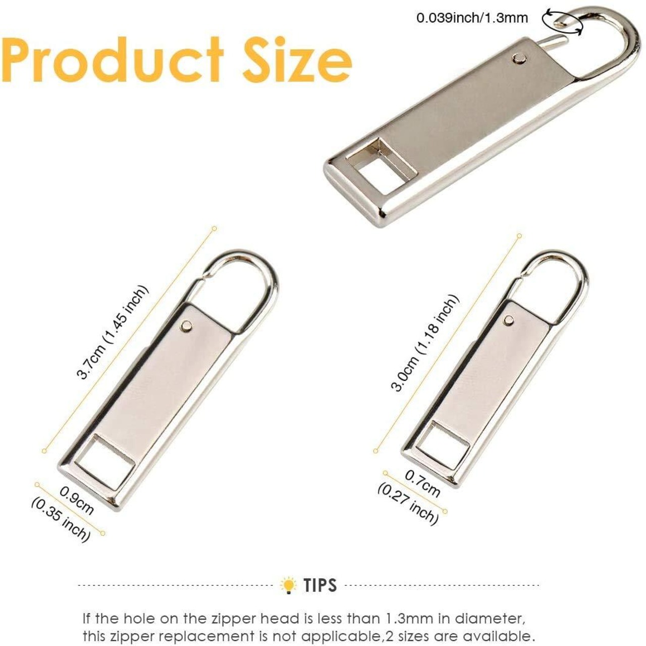 この大きいジッパーエクステンダーは長さ3.7cm(1.45インチ)、幅0.9cm(0.35インチ)、小さいジッパーエクステンダーは長さ3cm(1.18インチ)、幅0.7cm(0.27インチ)、新しいソリューションは落下しやすい問題を解決します オフ
