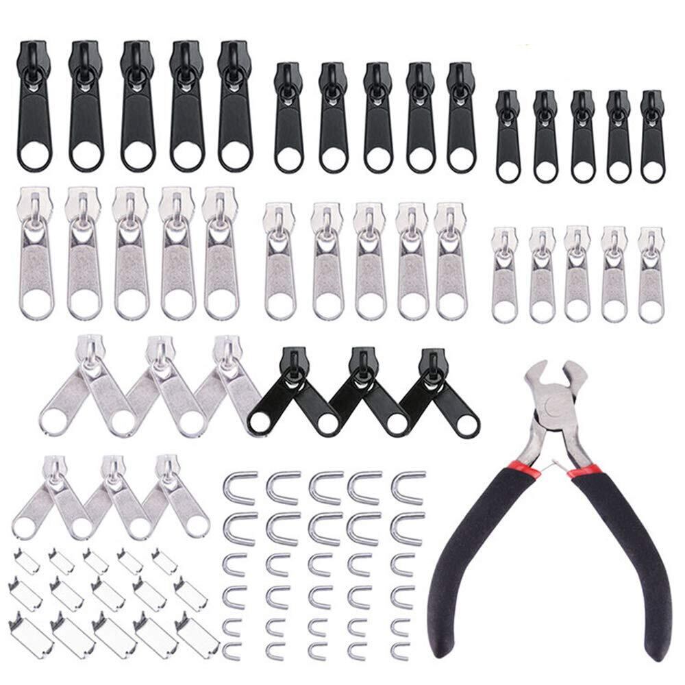 【在庫処分】サムコス ジッパー ファスナー 修理キット 修理用ペンチ付き 縫製 交換用 diy ジッパー ファスナー引っ張り 多機能ジッパーヘッド 財布裁縫/手作り/服装/手芸バッグ/ジャケット/テント/荷物/寝袋 修理屋さんに適用 (約85pcs) | jake