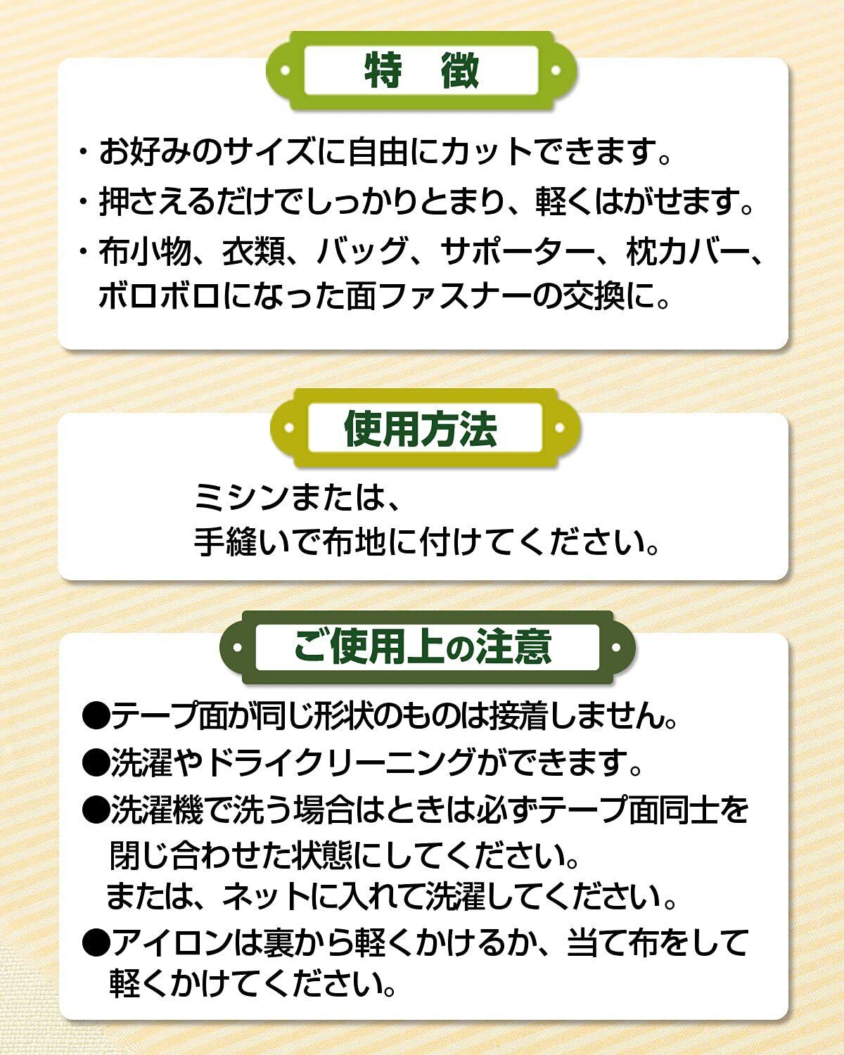 【 しっかり固定したい時に 】耐久性に優れた マジックテープ 素材です。布製品やバッグなど開閉回数が多く、しっかり固定したい場合はこちらの縫製用をお選びください。
