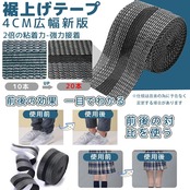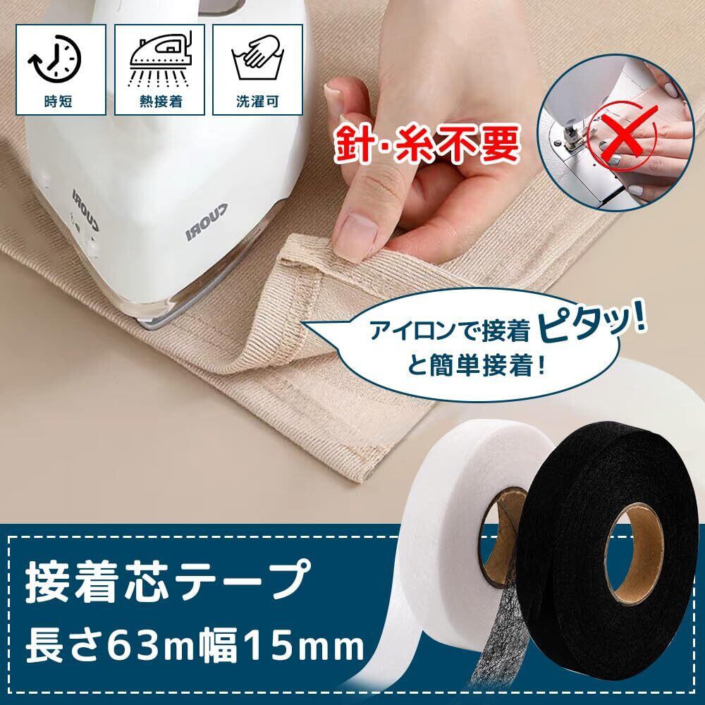 【内容量と製品仕様】 裾上げテープ4cm(新幅)×5M(長さ)*1本、黒の接着芯テープ15mm×63m*1本、両面用のメテープメジャー*1本、詳しい日本語取扱説明書*1本。