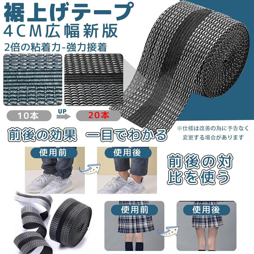 【2022最新】裾上げテープ【4cm広幅新版&接着芯テープ&メジャーと説明書付き】すそあげテープ アイロン 強力 裾直しテープ ズボンの裾上げ アイロン接着テープ 裾上げ ズボン裾上げテープ 布用 アイロン接着 ストレッチ ズボン スカート 裁縫上手 水洗い可能 (ブラック接着テープ 5M) | jake