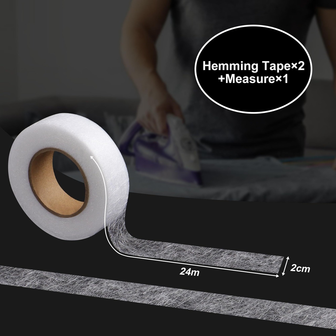 JUNART 2パック 2cm×24m アイロン接着テープ 強力裾上げテープ 両面テープ アイロン接着剤 カーテン・パンツ・ジーンズ・DIY手芸・スカートなどの補修用布テープ 強力パンツ裾上げテープ メジャー(白)