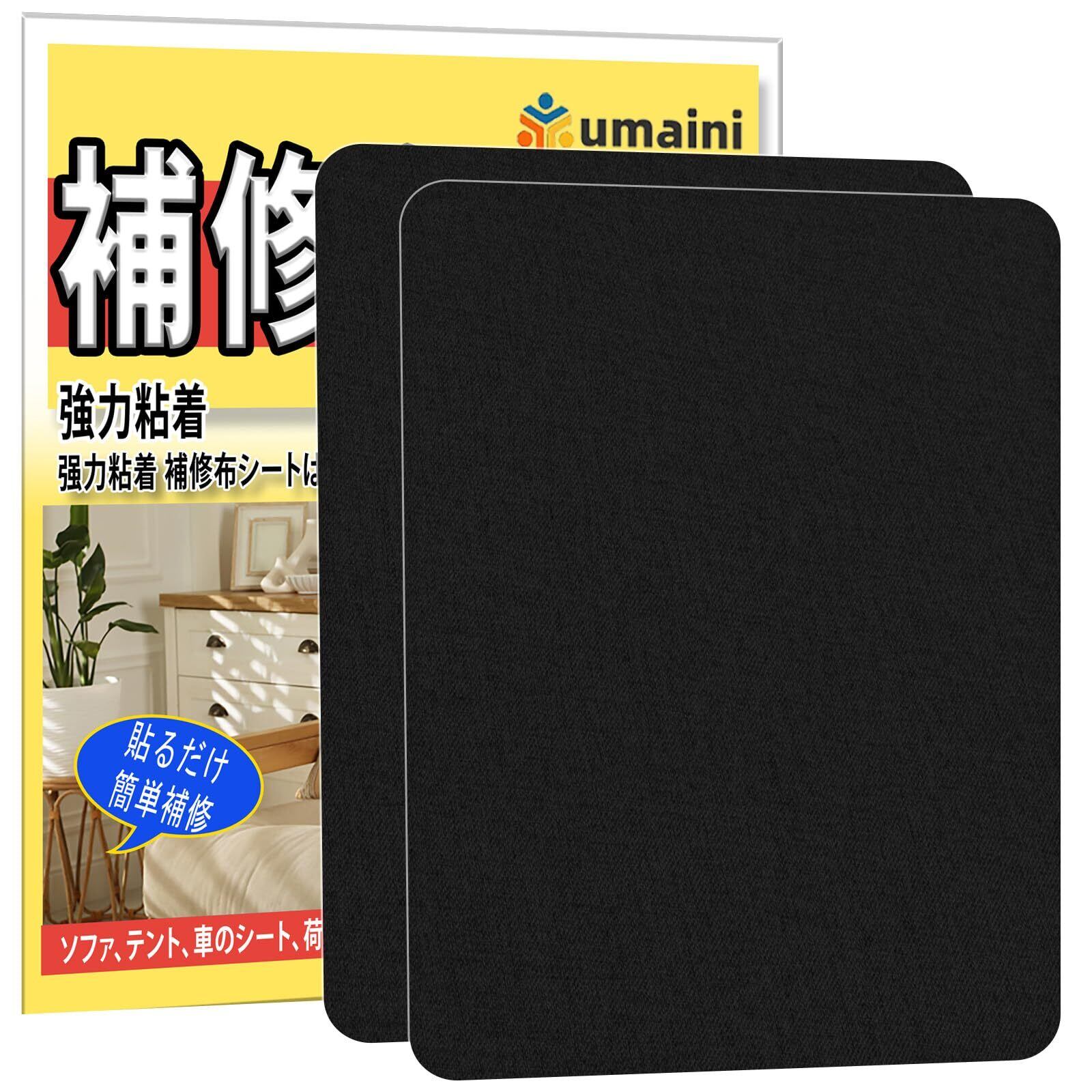 補修テープ 布 25 x 30cm 2枚入 リネン製 補修布シート ソファ 補修シート リネンパッチテープキット、椅子、枕、カーテン用ファブリックパッチテープ 黒