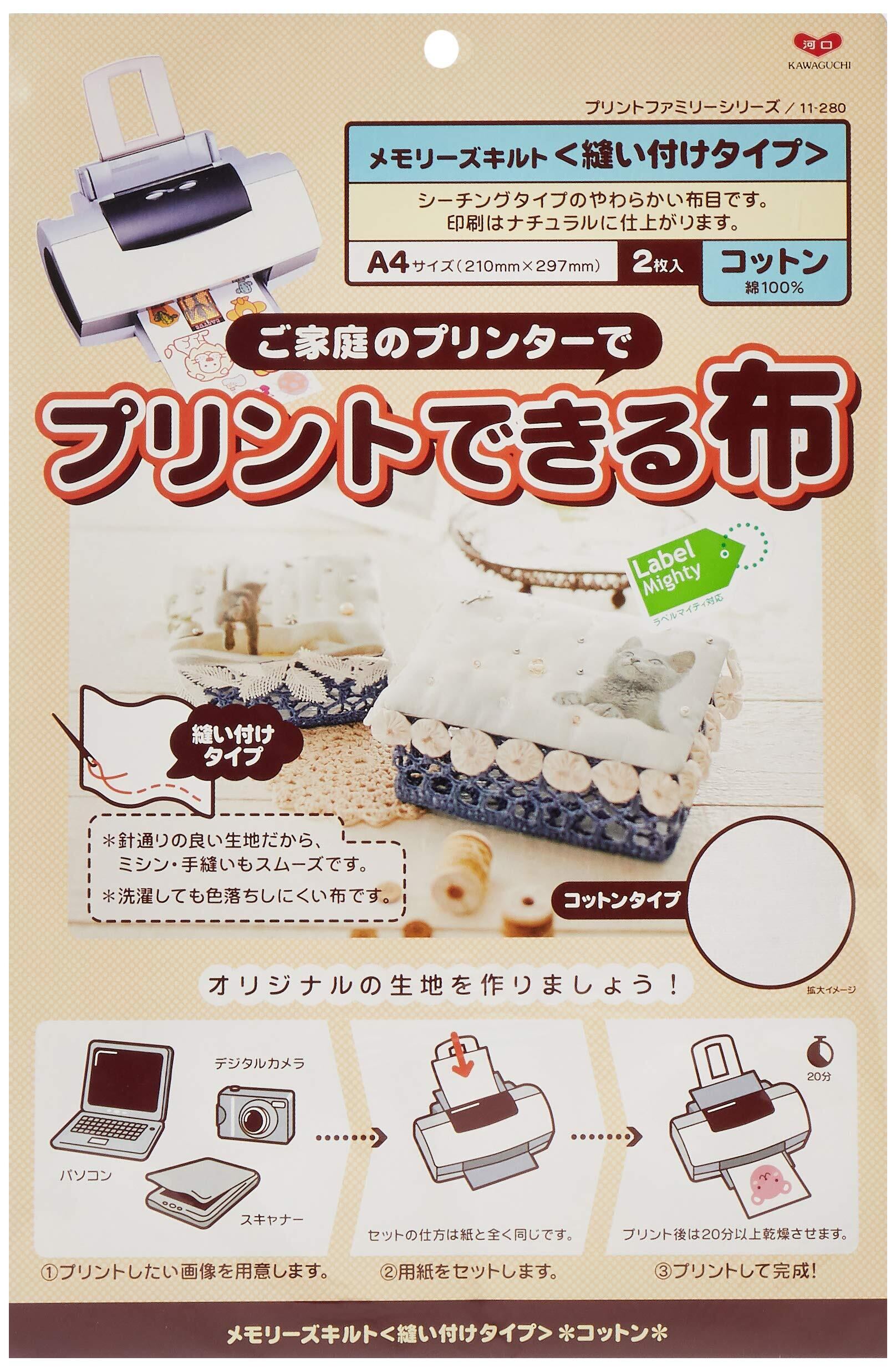 KAWAGUCHI プリントできる布 メモリーズキルト クラフト用 縫い付けタイプ コットン 2枚 A4 11-280 ホワイト