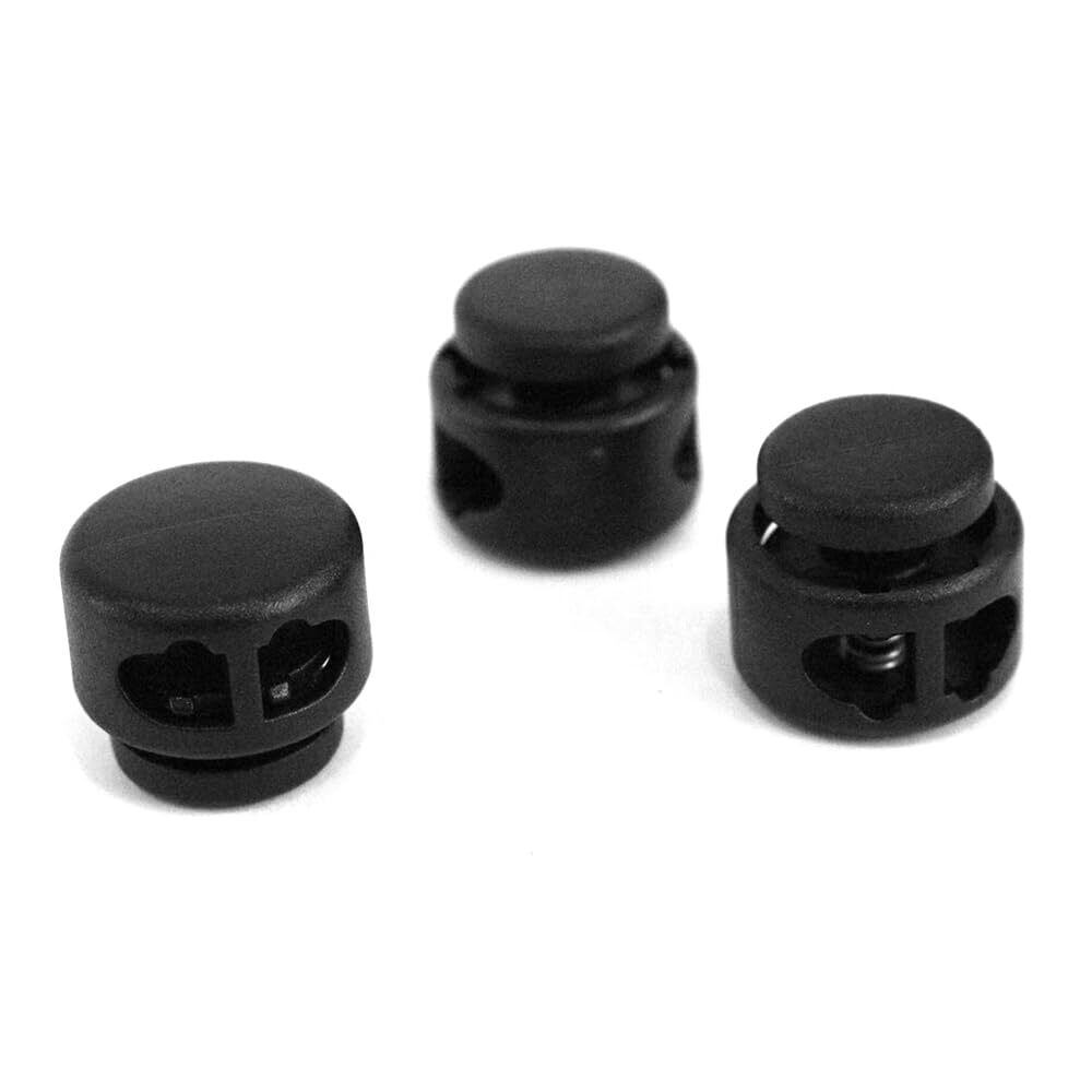 【新春セール】コードストッパー 2つ穴タイプ ひも止め金具 20個セット プラスチック製 コードロック スプリング 交換 補修用 DIY アクセサリー パーツ スポーツウェア 帽子 靴の紐 扁平双孔 黒 | jake