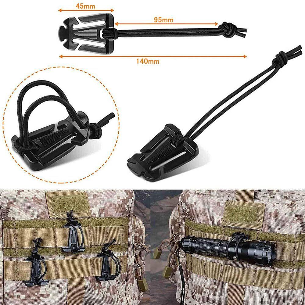 パッケージ内容:10タクティカルギアクリップMolleウェブドミネーター、バックパックにクリップし、複数の小物をひもで固定するように設計された伸縮性のあるストラップ.Molleシステムを簡単にリリースする。