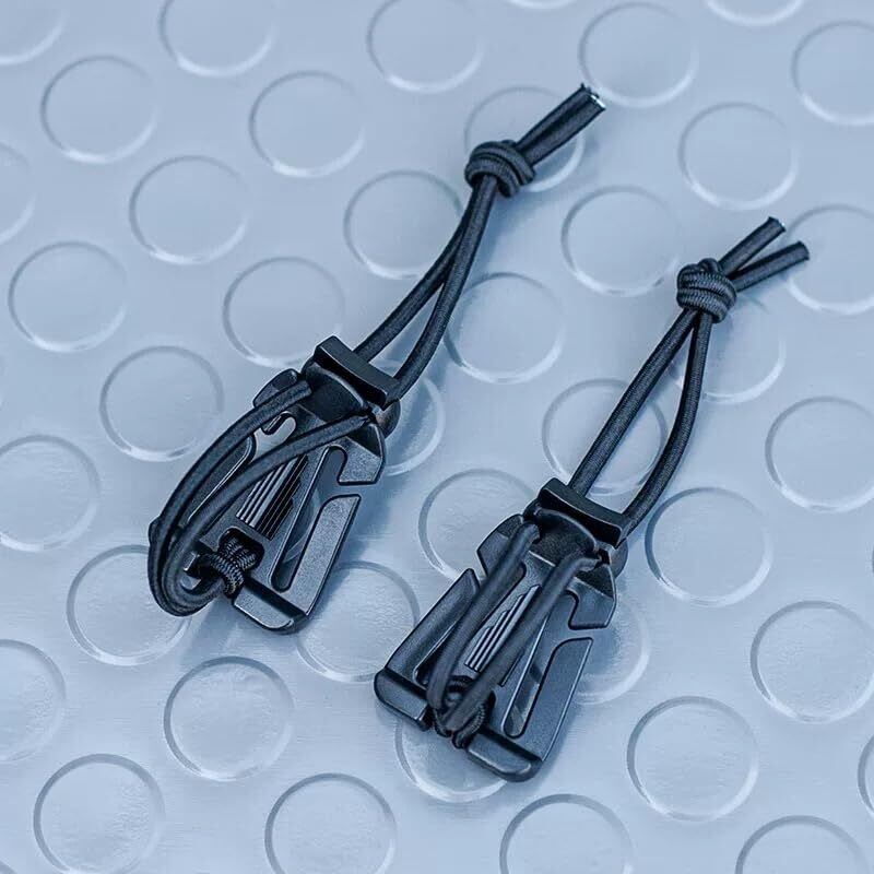 伸縮性のあるコード、クリップ、バックルは、簡単に開くことができ、閉じたときにしっかりとアイテムを保持します。