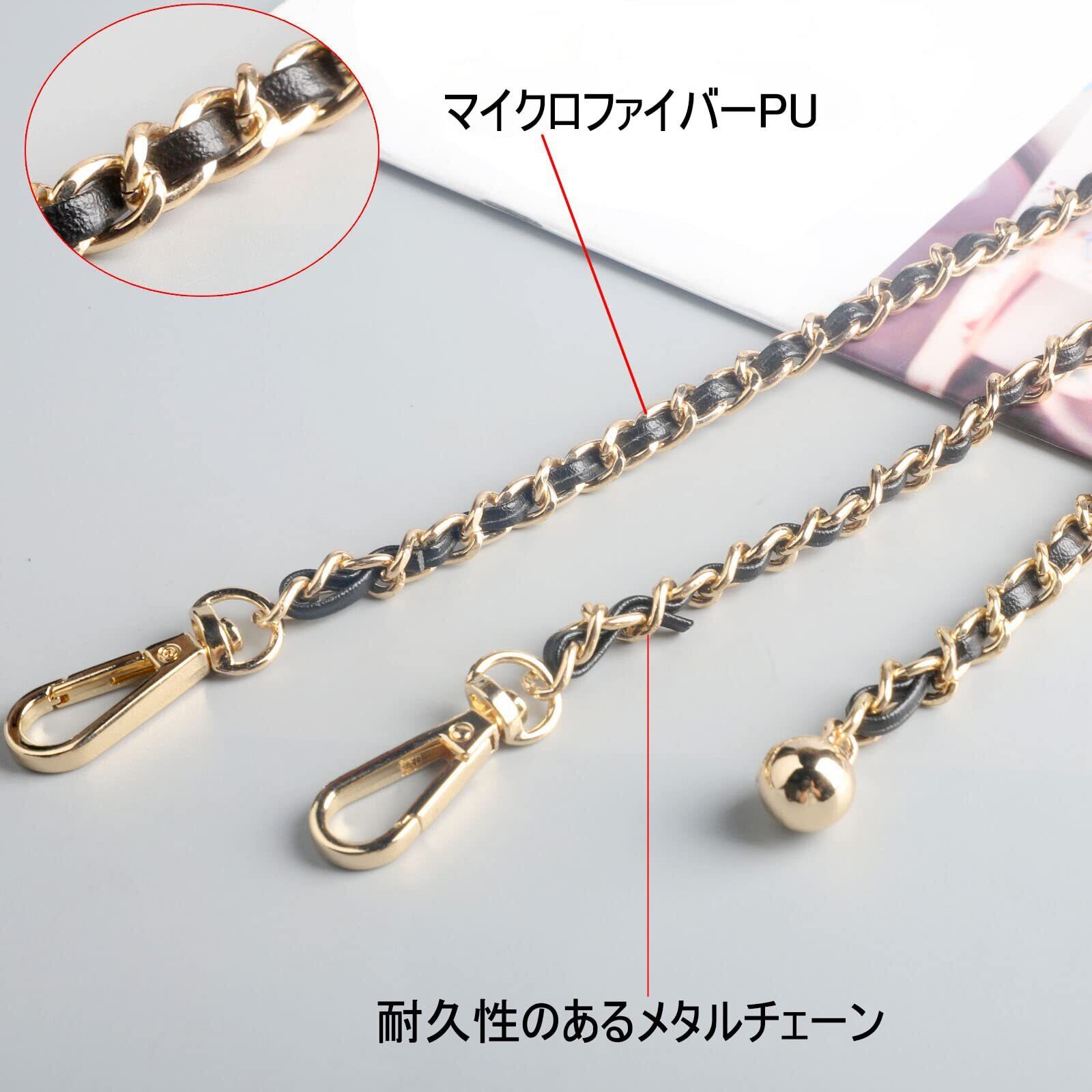 BEAULEGAN 調整可能 薄い チェーン ストラップ ショルダー クロスボディバッグ用 付け替え 120 CM (黒/真鍮)