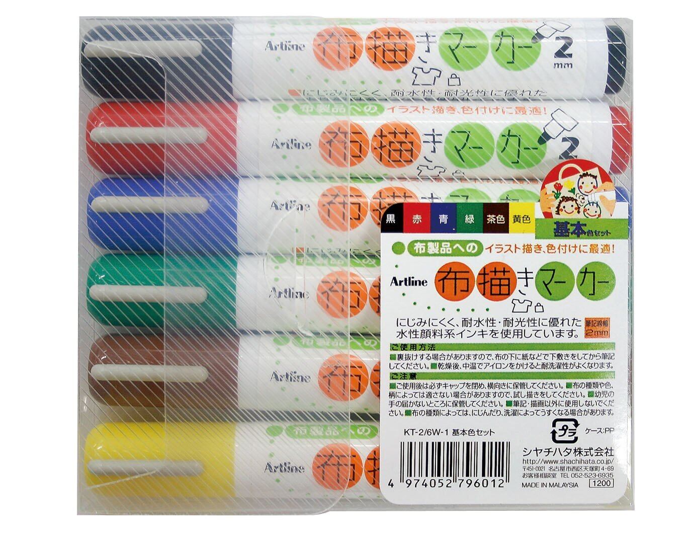 シャチハタ 布描きマーカー 水性 KT-2/6W-1 基本 6色セット