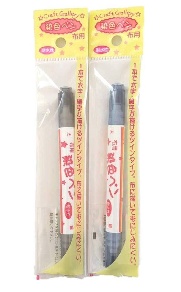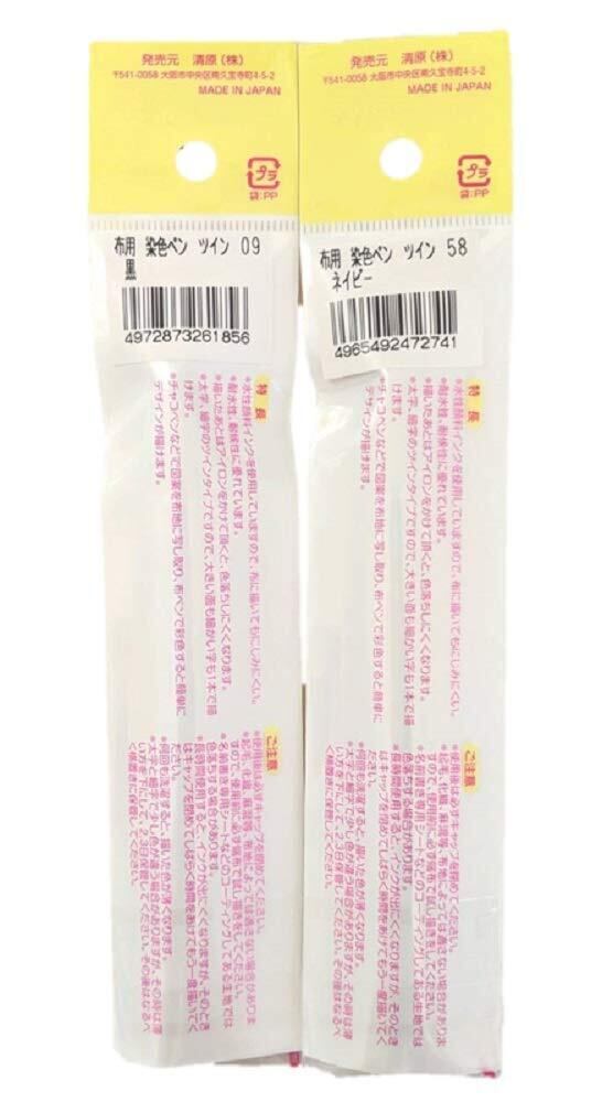 2色セット KIYOHARA 布用染色ペンツイン 太/細 水性顔料 (黒、ネイビー)