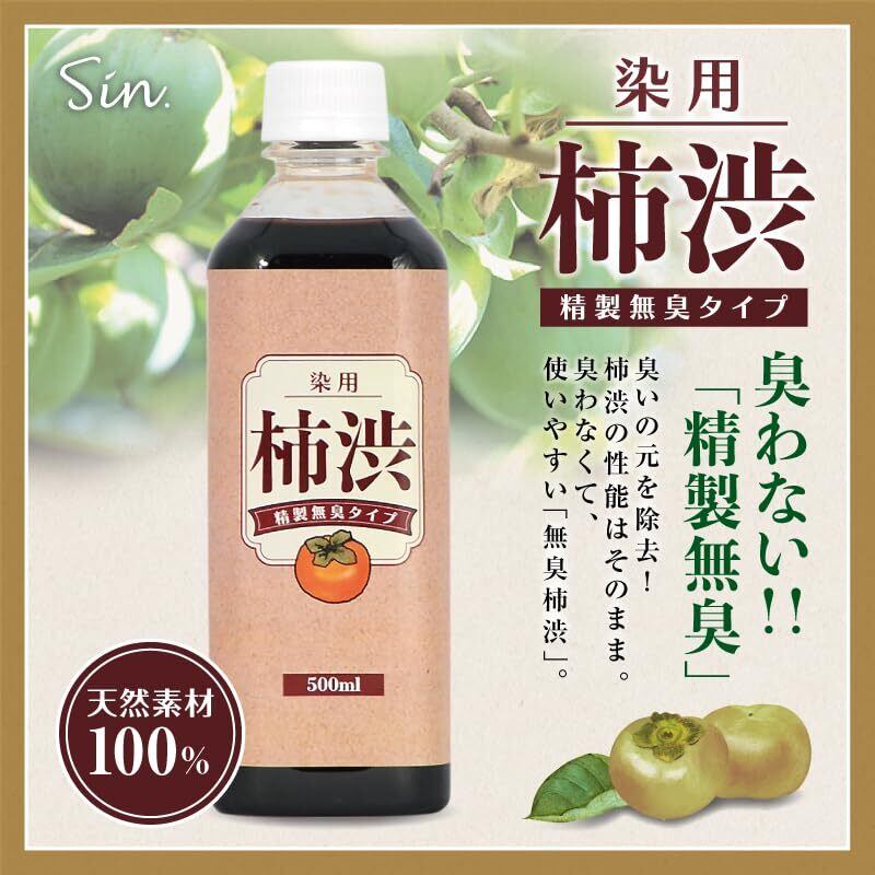 国産 柿渋 塗料 無臭 500ml 染料 精製無臭タイプ 染め液