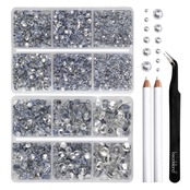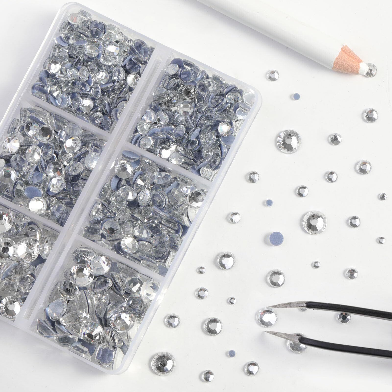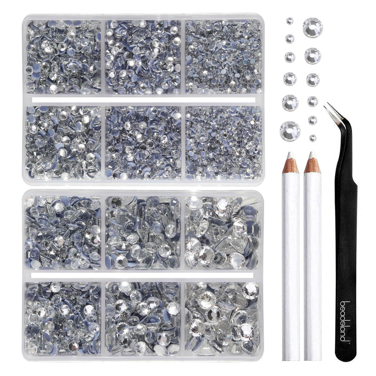 BEADSLAND Hotfix Rhinestones 6080PCS Clear Rhinestones for Clothes Crafts Mixed 6 Sizes with Wax Pencil and Tweezers Kit SS6-SS30 Crystal