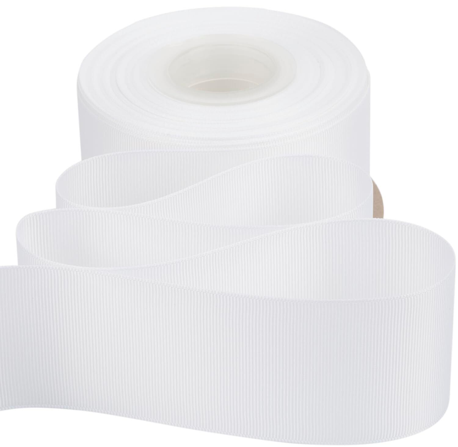 【IDECORRIBBONS】グログランリボン 幅50mm×全長22m ホワイト(#029) 1ロール|結婚式・リボンヘアゴム・プレゼントラッピング・DIY手芸