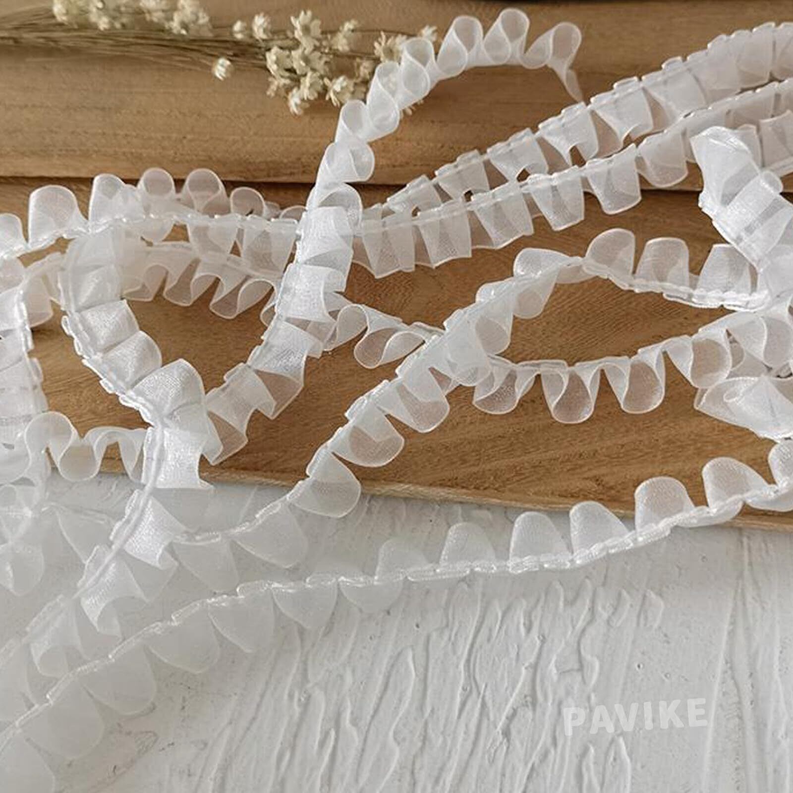 PAVIKE 白いレース レースリボン 幅2.5cm 長さ4.5m 布団カバーフリル フリルリボン フリルレース レース生地 手芸用レース 縫製 DIY用 服装装飾 手作り カーテン、ウェディングドレス、ロリータ、コスプレ、プリンセス、スカートの裾 ハンドメイド素材