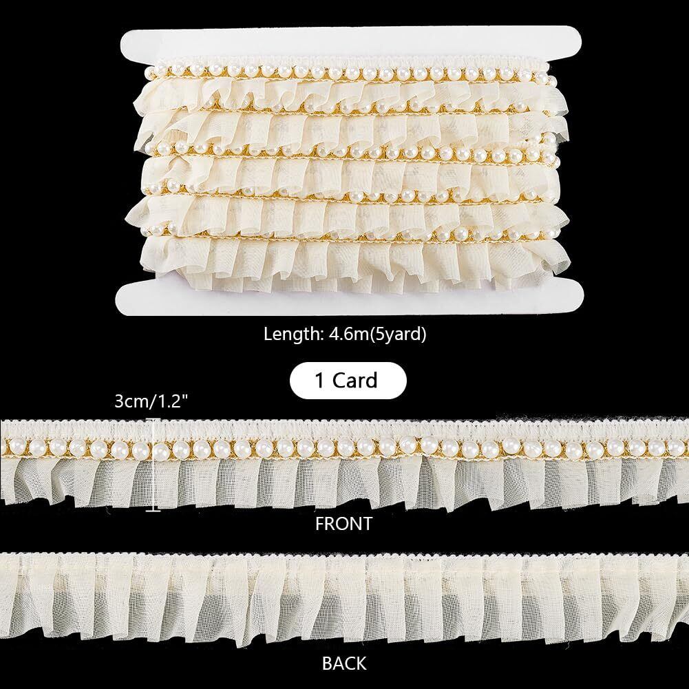 PH PandaHall 5ヤード 幅30mm パールトリム レースリボン レースフリルトリムリボン パール付き 太め 手芸 クラフトリース ラッピング用 アウトドア装飾 結婚式の装飾 DIY 手作り 装飾用 約4.5m/巻 オーガンザ ホワイト