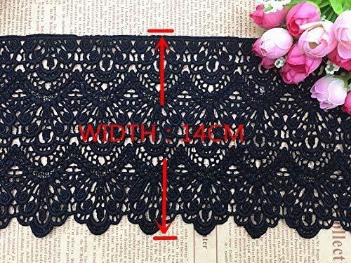 幅:14cm 弾力なし、花モチーフ付刺繍入りレース、アクセサリー テーブル掛け、カーテン、ウェディングドレス、DIY、服装装飾(1バック2ヤード)に適用すること。 (濃い青色)