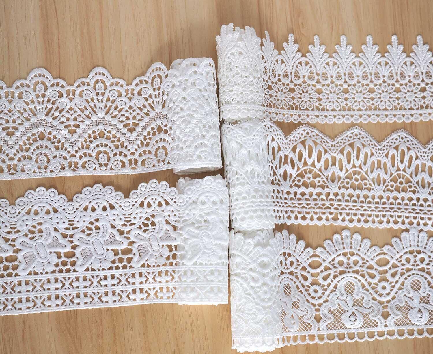 Hymyily 5m(5種類) 弾力なし花モチーフ付刺繍入りレース アクセサリー テーブル掛け カーテン ウェディングドレス DIY手作り作品 服装装飾レースファブリックトリム 生地 (ホワイト)