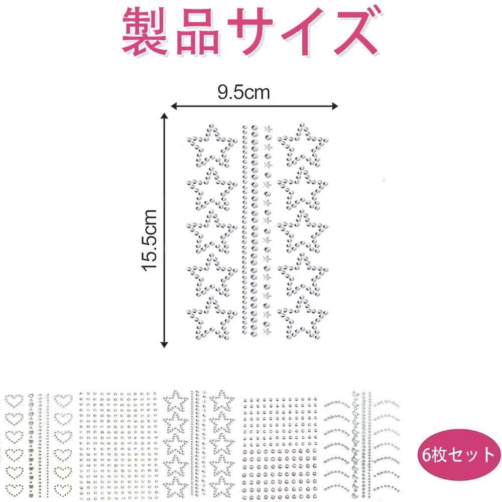 【多用途ステッカー6枚】このセットには6枚の自己粘着ラインストーンシールが含まれており、形状が異なり、例えばハート形、星形、水滴形などです。DIYクラフト、フェイスメイク、ヘアデコレーションなどに最適です。