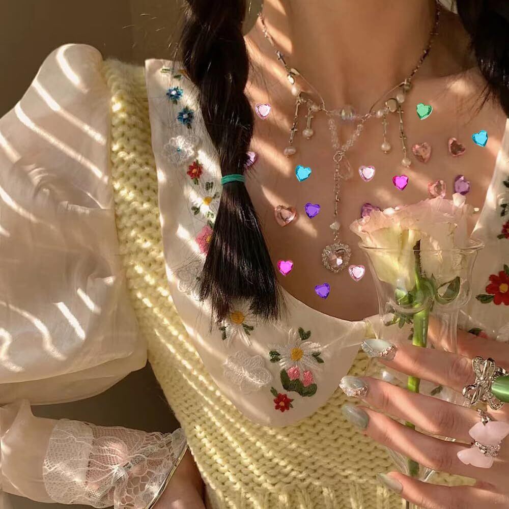 キラキララインストーンシール:立体的な3D技術で製作されたハート型のラインストーンシールは、鮮やかな色彩と立体感で、顔や装飾品に華やかな輝きをプラス。あなたの魅力を思う存分発揮してください!