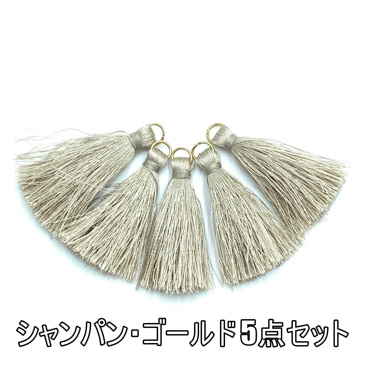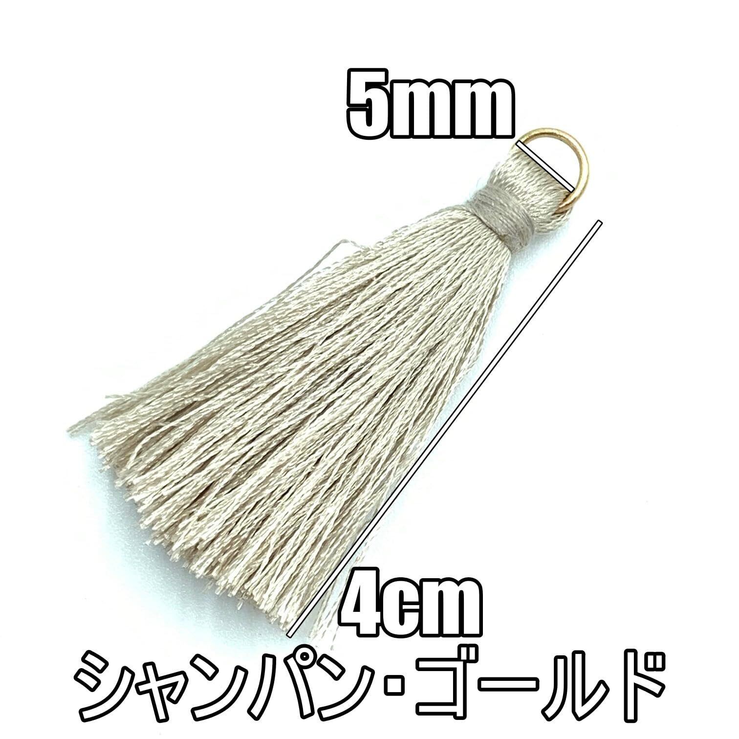 TEA MYONG タッセル チャーム フリンジ 丸カン付 4cm アクセサリー パーツ 飾り房 ポリエステル 素材 YT-4 (シャンパン・ゴールド 5)