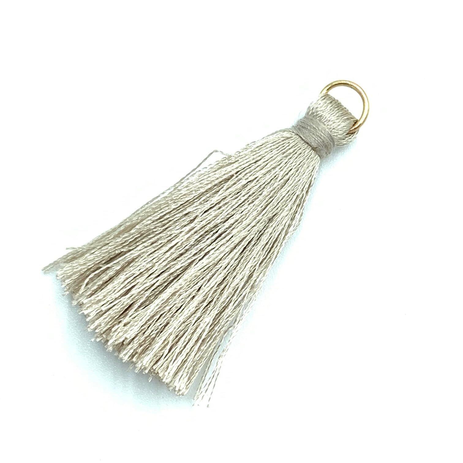 ベーシックなデザインで用途が広いカン付のタッセルチャームです。