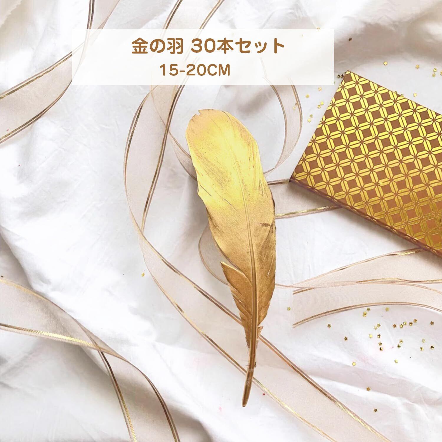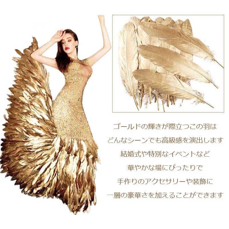 金の羽 30本セット 羽シャワー ゴールドフェザー 飾り 結婚式 演出 舞台 天使の翼 DIY手芸材料 ドリームキャッチャー おしゃれ 15-20cm