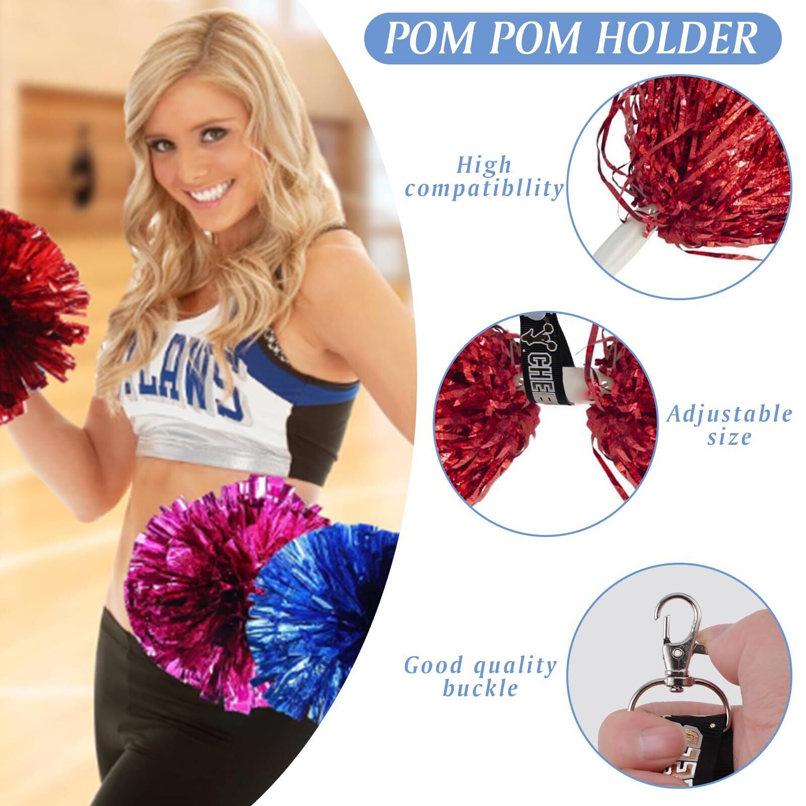 取り付けが簡単:必要な長さを選択し、ボタンを押してフラワーボールのハンドルを固定し、金属製のスプリングフックでバックパックのバックルにチアリーディングポンポンホルダーを吊るすと、操作が簡単で、初心者でもすぐに理解して取り付けることができます