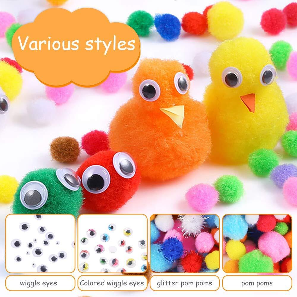 ポンポンボール 2000個 カラフル 毛球 小玉 + 700個 ドールアイ 人形 目玉 セット 髪飾り DIY手作り 手芸材料 丸い毛球 5サイズ入り