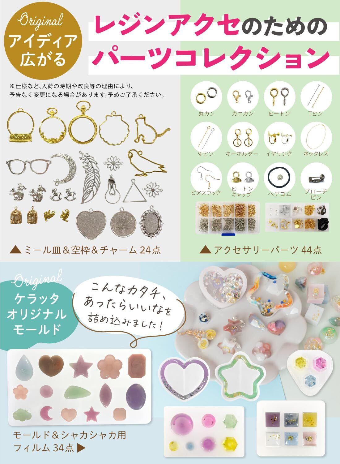 【金具パーツ69点】新クラフトセットは、作れるアクセサリーの種類が増えました 作れるアクセサリーは、ピアス、イヤリング、ネックレス、キーホルダー、チャーム、 ヘアゴム、ブローチととっても豊富! レジン初心者の方でも簡単にレジンアクセサリーが作れます。 アクセサリー作りに必須な基本パーツも揃っており、 それぞれのパーツの説明やアクセサリーの作り方など、 ビギナーズガイドで動画&写真付きで詳しくご紹介!