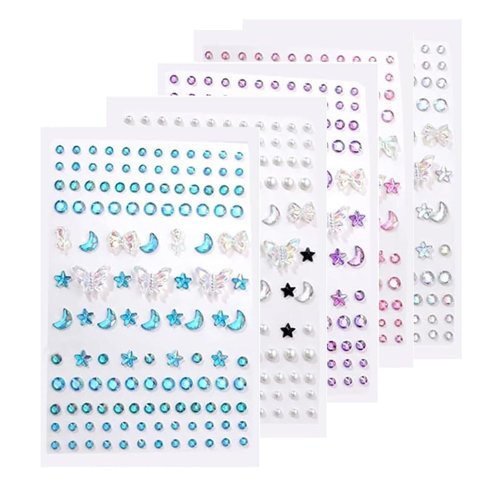 PAVIKE ラインストーンシール 5枚セット 星、蝶、月、円形 ジュエリーシール キラキラデコシール 宝石 ジュエルステッカー 顔面デコ デコパーツ ネイルアートパーツ 携帯電話飾り用 DIY用 貼り付け可能 手芸用品