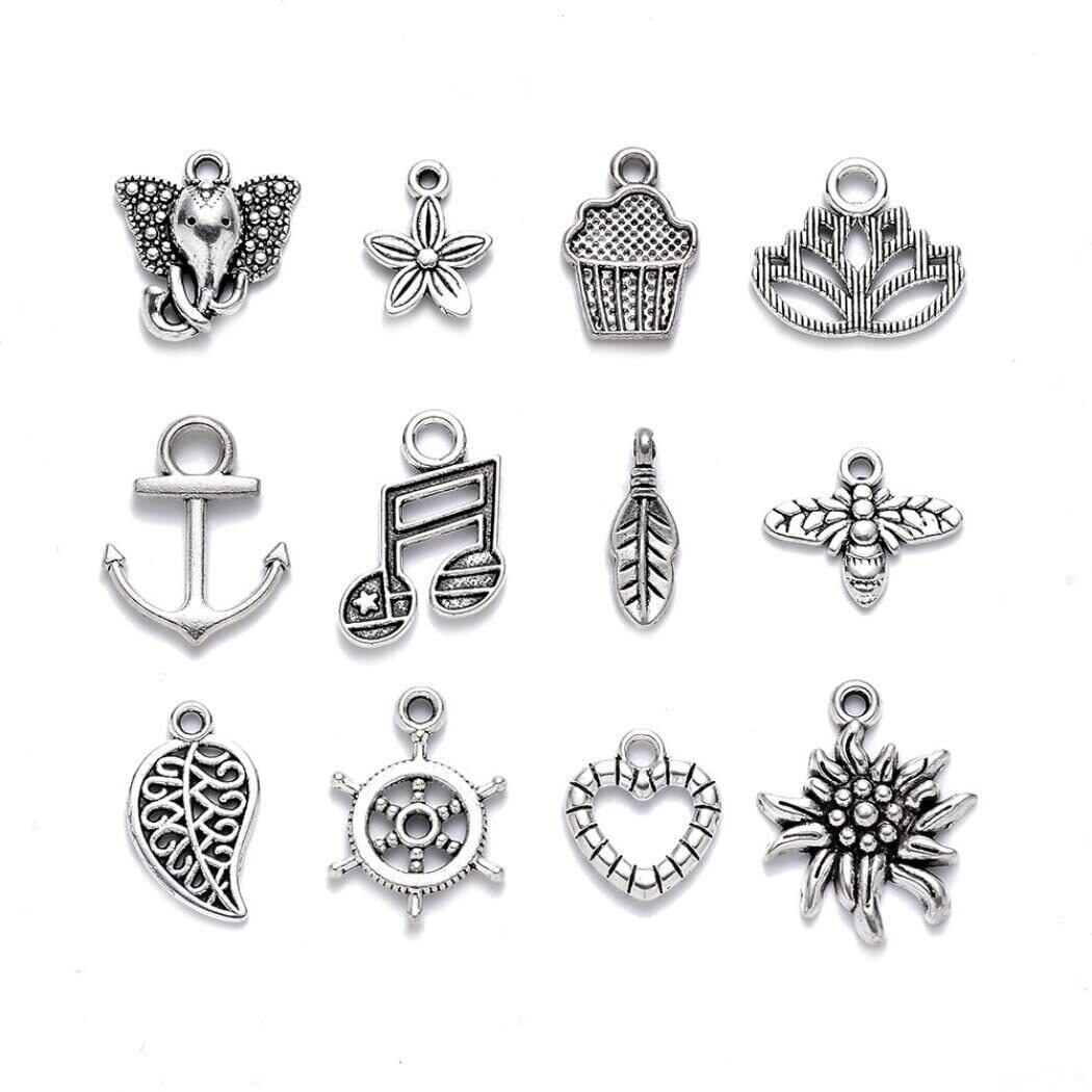 HappyHome チャーム パーツ ペンダントトップ アクセサリーパーツ 100個入り シルバー DIY 手作りアクセサリー